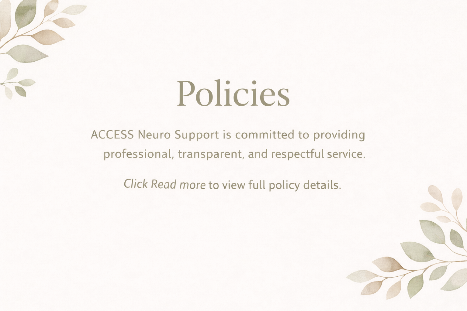 ACCESS Neuro Support is committed to equality, inclusion, and respect for all individuals. Services are delivered without discrimination and with respect for neurodiversity, identity, culture, and individual circumstances. We work in a person-centred and accessible way.